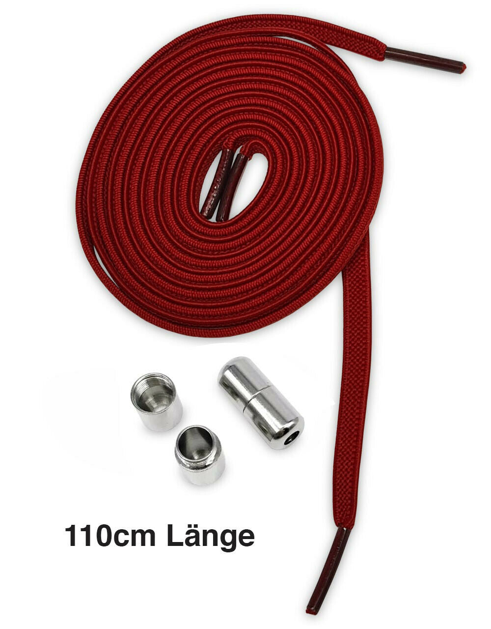 1 Paar elastische Schnürsenkel ohne binden für Sportschuhe mit Metallkapsel in Silber, Länge ca. 110 cm und Breite ca. 6 mm.